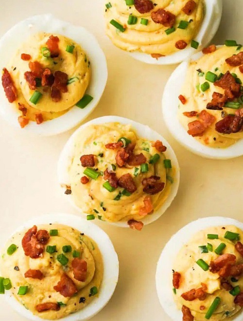 تعتبر لعبة Loaded Deviled Eggs، إحدى الألعاب الكلاسيكية المفضلة في الحفلات، وهي ممتعة تمامًا للجمهور. مع عدد قليل من المكونات، بما في ذلك 6 بيضات كبيرة، والمايونيز عالي الجودة، والقشدة الحامضة، وخردل ديجون، والثوم المعمر، والصلصة الحارة، ورشة من الفلفل الحلو المدخن، يمكنك إنشاء السحر في مطبخك. مزيج هذه العناصر البسيطة يحول البيض العادي إلى تجربة ذواقة، مما يرفع مهاراتك في الطهي إلى آفاق جديدة.