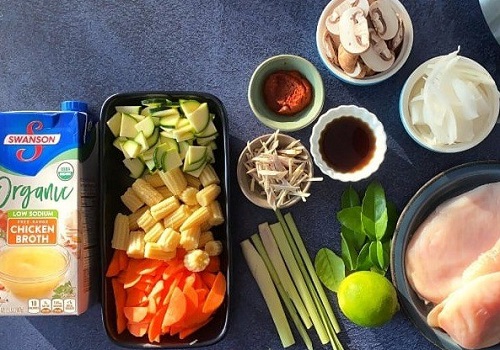 At the heart of every great recipe lies its ingredients. To embark on our Tom Yum adventure, gather 4 cups of low sodium chicken broth, 2 cups of water, and a medley of fresh produce. Begin with a base of sliced onions, complemented by earthy crimini or button mushrooms. The aromatic duo of lemongrass and kaffir lime leaves infuse the soup with a citrusy zing. For a protein punch, add tender chicken breast slices, and elevate the flavors with julienned ginger or galangal. Enhance the soup’s depth with 2 tablespoons of fish sauce (or soy sauce for a vegetarian twist) and a teaspoon of salt, balancing the tastes impeccably. Finally, the star of the show—the Thai red curry paste—lends the soup its signature hue and fiery notes.