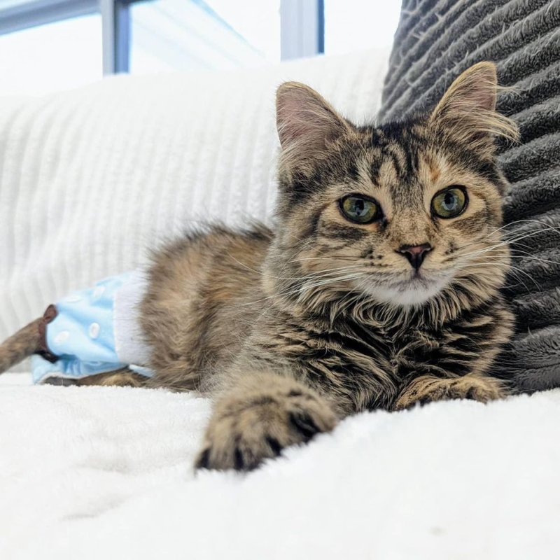 Little Merida faced difficulties at an early age. She was 2.5 months old when she was accidentally discovered on a farm in Columbus, USA. A cat with paralyzed hind legs crawled to people in search of food and help. Although her paws were paralyzed, she remained strong.