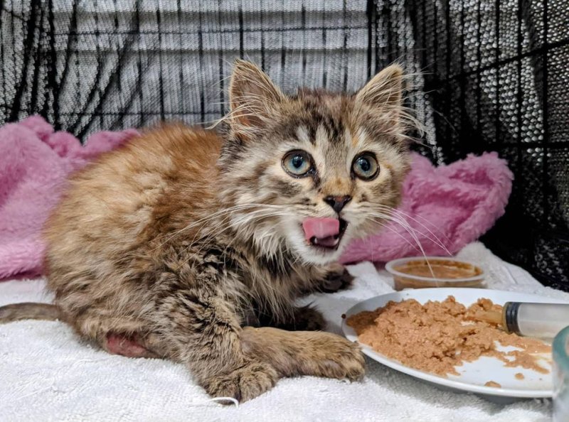 The owners of the farm immediately contacted the FosterBabyCats rescue center, and the cat was taken there. Experts determined that her paws had failed due to spinal damage, but when she was shown to veterinarians, they said they could not save the kitten… However, the volunteer, who then took care of Merida, did not give up.