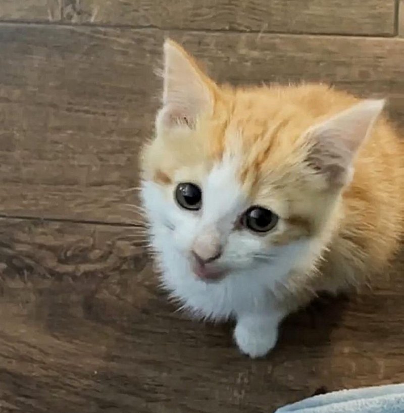 A small red and white kitten was found on the streets in Texas. The weak but outgoing poor animal was covered in fleas and people immediately took him to the Firehouse Animal Health shelter. There he was accepted with joy and was given the nickname Garfield.