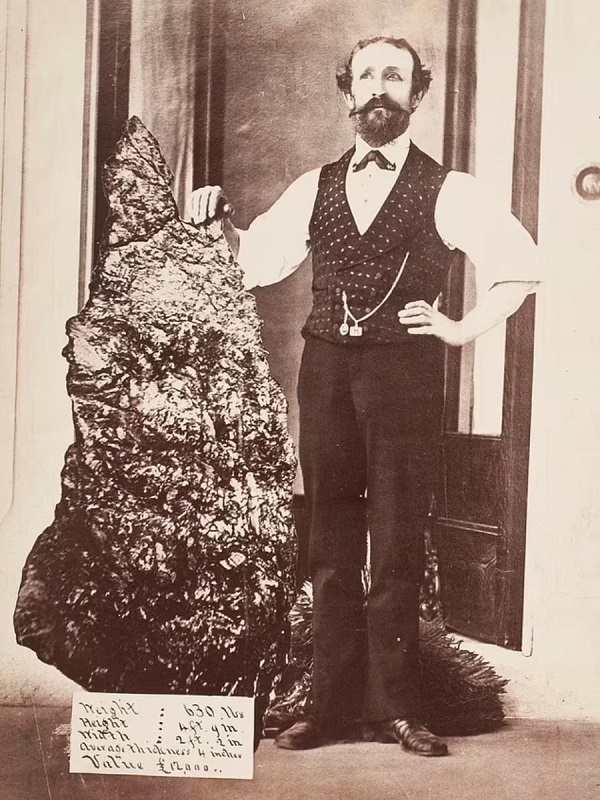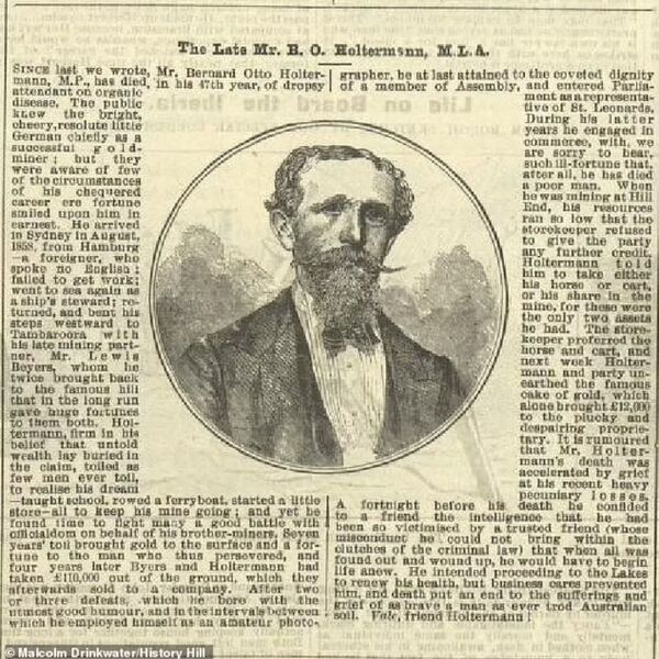 The largest single mass of gold ever recorded on earth was brought to the surface and Holtermann commissioned itinerant photographer Beaufoy Merlin to capture him next to the find.