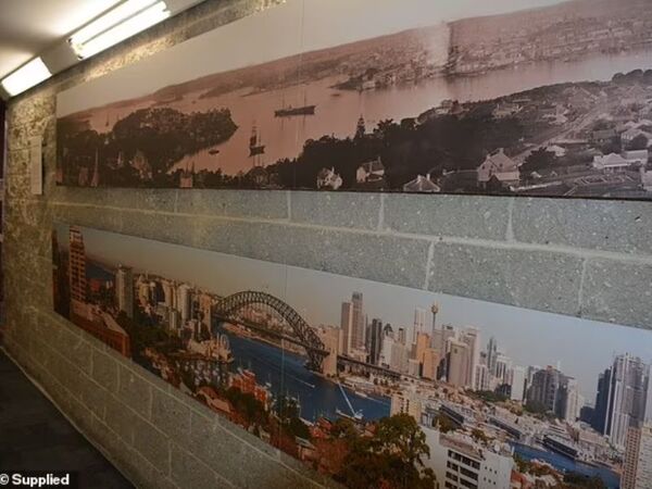 A copy of Holtermann’s harbour panorama is hung in the hallway that leads to North Sydney Council’s customer service centre, above a comparable modern image (pictured)