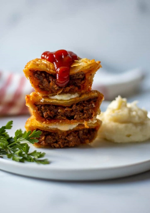 While the pastry chills, let’s prepare the savory filling. Heat a tablespoon of vegetable oil in a skillet over medium heat. Add diced onions, minced garlic, and carrots, sautéing until they become tender and aromatic. Incorporate the ground meat, breaking it apart with a spoon as it cooks. Season the mixture with white pepper, curry powder, dried thyme, mixed herbs, and salt to taste. Allow the flavors to meld, creating a fragrant and hearty filling that embodies the essence of Australian comfort food.