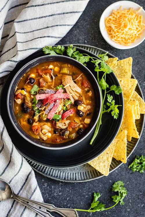 5. Garnishing and Serving: Once the cooking is complete and the pressure has released, open the lid to reveal your masterpiece. Garnish the soup with a sprinkle of chopped cilantro and a generous squeeze of fresh lime juice. For an added crunch, serve with tortilla chips and top with shredded cheese, sour cream, and diced avocado.