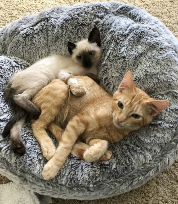 This is one of those stories that makes you believe in true friendship! Two rescued kittens with different personalities and difficult fates have found each other – now they are thick as thieves.