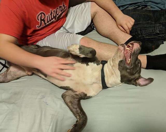 Stormy became surprisingly attached to his rescuers. When Alana’s son wasn’t feeling well and was lying in bed, the dog would stay in his room all day and follow him when he got up. All he needed was to socialize with people and be loved.