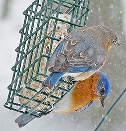 Eastern Bluebirds at a suet feeder. Photo by Bob Vuxinic via Birdshare. 6. (Bonus Step) Put It All Together