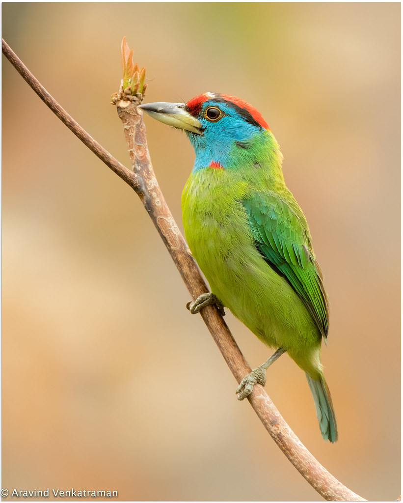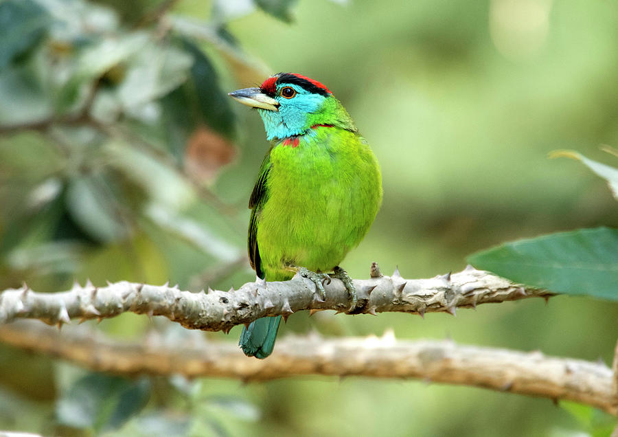 The Blue-throated Barbet is a medium-sized, vibrantly colored bird known for its distinctive appearance. Its emerald-green plumage, crimson face, and, as the name suggests, blue throat make it a remarkable sight in the wilderness. These birds are medium-sized, measuring around 20-24 cm in length, and are known for their distinctive trilling calls.