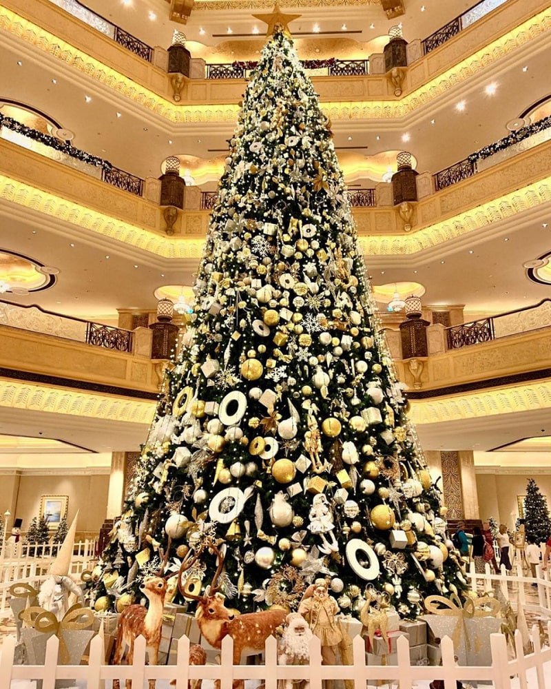 The Christmas tree is located in the Emirates Palace hotel lobby, Abu Dhabi capital of the United Arab Emirates